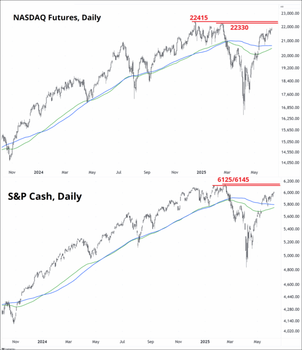 Some have made the point that even after the subprime story was well-known and stocks cratered in August 2007, they went on to eke out a new all-time high before the eventual 56% collapse. It’s a lot harder to make the economic apocalypse argument right now as the US data continues to hold in, but whatever happens, a marginal new ATH would definitely be soul-sucking for the bears. Ironically, it’s much harder to make a convincing bearish US stock market argument here at 6000 than it was 8 weeks ago at 4800.