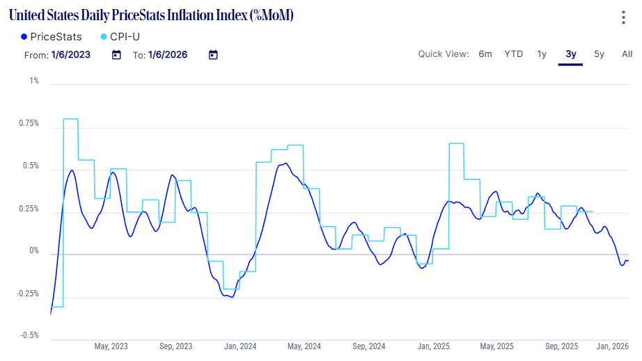 Private inflation data (State Street PriceStats and Truflation) point to significant disinflation as the mild inflationary impact of tariffs dissipates and real-time measures of housing prices lose steam. Inflation in Australia and Germany both came in on the low side this week, too, further encouraging those with a disinflationary view. I had been concerned that commodity price and electricity inflation would transmit into consumer prices and keep things sticky, but I have jettisoned that view as the disinflationary forces appear to have the upper hand.