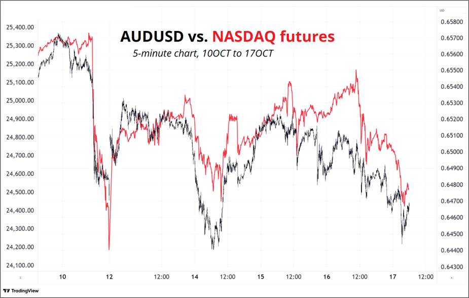 Price action in recent days drives this home. The reality is that if Aussie Supers buy AUD, it’s a Texas Hedge, not a hedge. Until the risky asset vs. AUDUSD correlation changes, they either need to have a forward-looking view on a corr flip (doubtful they would take that much career risk) or they need to chill.