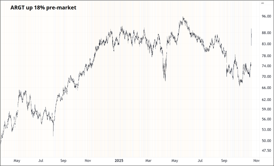 There is pretty much no correlation between the public statements and the real-world actions of the two governments, but for now we have a de-escalation into the most bullish seasonal period of the year for stocks and so the rally continues. Buybacks will begin again in earnest and as I showed last week, the first eight days of November are crazy, crazy bullish for stocks. And we are going into megacap earnings. So, there is no obvious reason to fade this China/US “news”, no matter how cynical you feel about it.