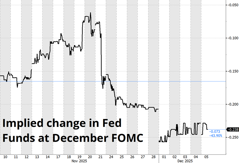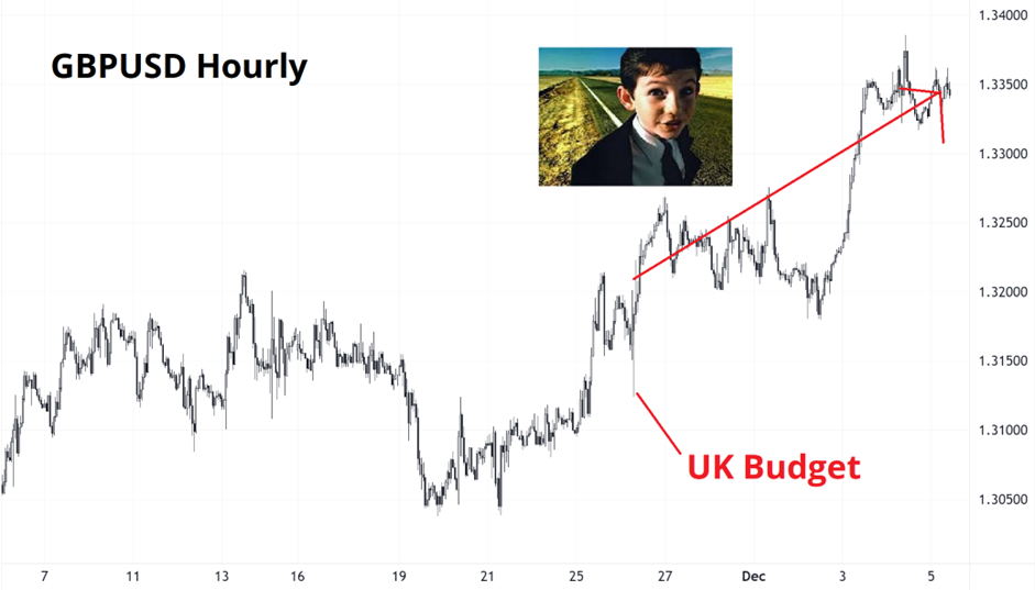 Meanwhile, most other central banks around the world are done cutting for now as the RBNZ came in hawkish, Canadian data is on the rebound, and the ECB is on permahold. The Bank of Japan, in contrast, is looking like they might hike in December. I would be careful with that one as it reminds me of December 2024, when a BOJ hike was expected, the BOJ passed, and USDJPY spiked 400 pips.