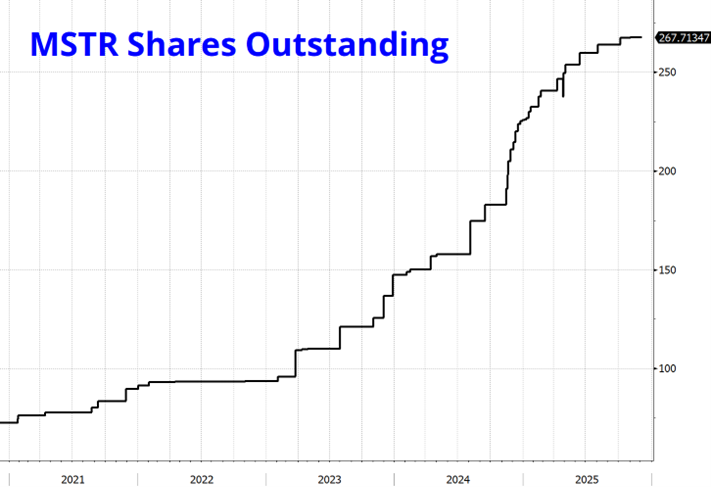Shares outstanding have more than doubled since 2021. Unlike bitcoin, there is no fixed supply of MSTR.