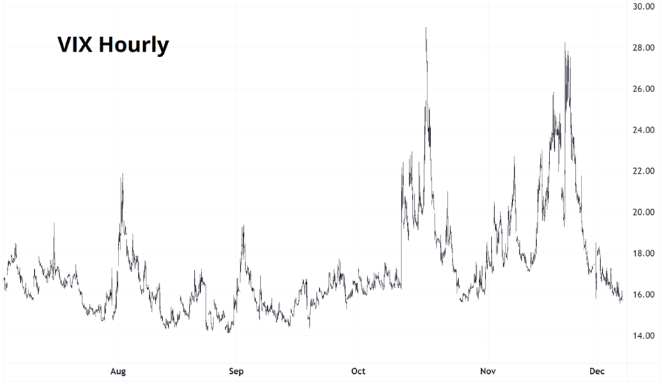 And with Fear turning back towards Greed, the VIX is back on a 15 handle. I have been bullish since mid-November, with decidedly mixed results, and I’m neutral now. The market is too bullish today just like it was too bearish two weeks ago.