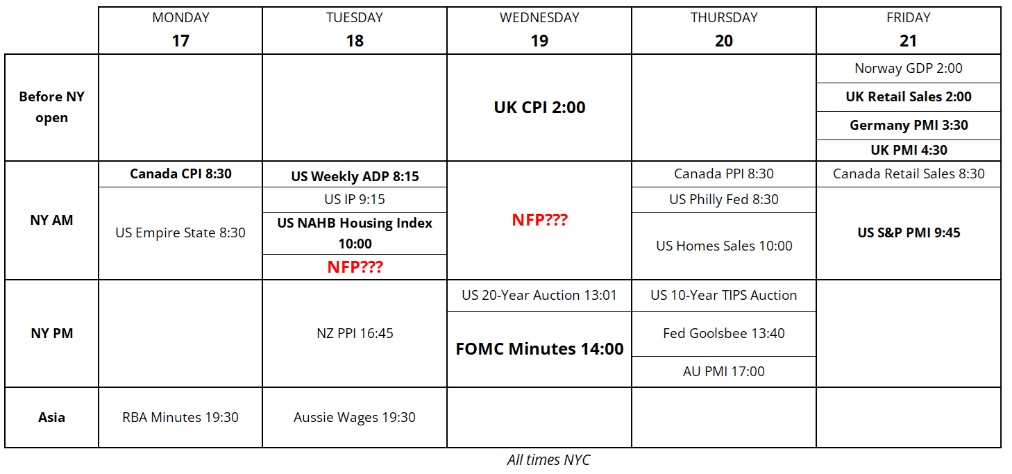 Next week’s calendar contains some question marks as there is still no announcement with regard to the delayed data points in the U.S. The BLS website just says: