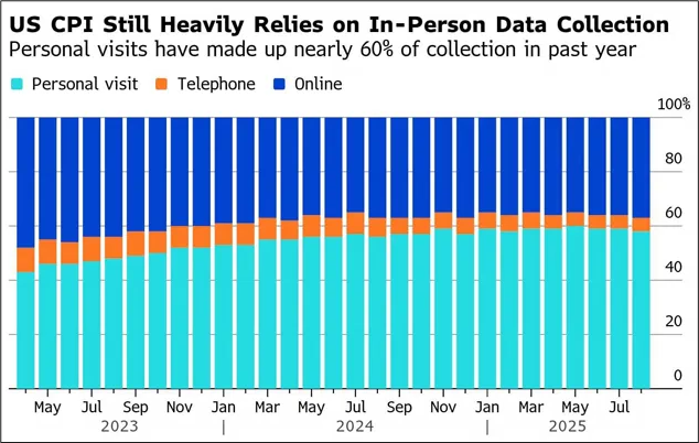 We get CPI this Friday, and while I lean towards an as expected or strong figure given underlying price pressures in series like PriceStats and ISM Prices Paid, there is more potential than usual for variance as the process could have been hindered by the shutdown. The shutdown started October 1, so presumably the manual data collection for September was not affected, but who knows how many corners are being cut to get the thing out so they can do the COLA adjustment. In reading about the release, I was surprised to see how much of the collection is still done manually.