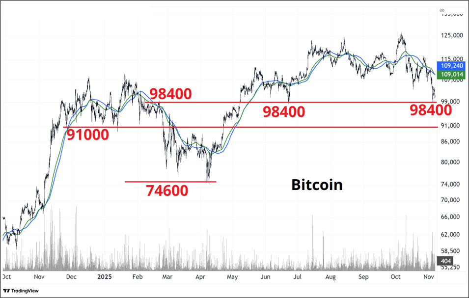 4-hour bitcoin chart follows below. 98250/98400 area (depending what feed you look at) has been a major pivot all year. Broke down in FEB / held below / then cracked above in May, retested and held. Nearly tested again Tuesday.
