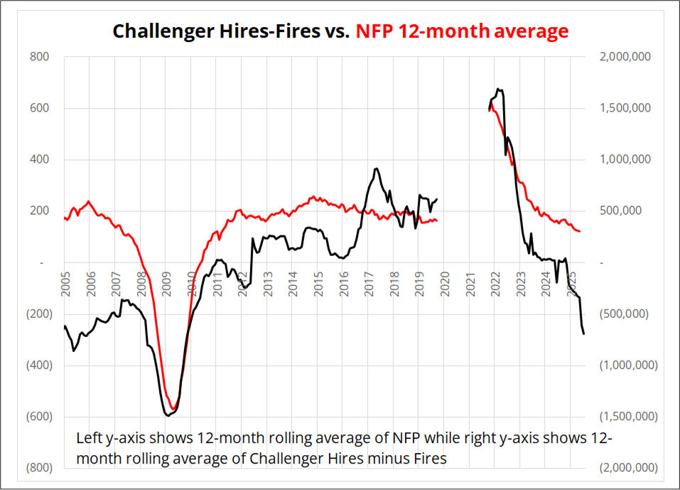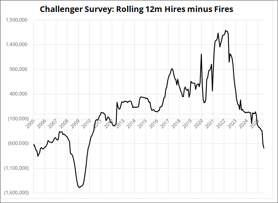 Challenger data is much noisier than NFP, and thus there’s some risk I am overhyping this. I would trust NFP much more, but we don’t have NFP. So there.