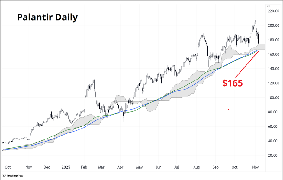 The price of PLTR needs to stay above $165. That’s where both 100-day MAs and the cloud converge.