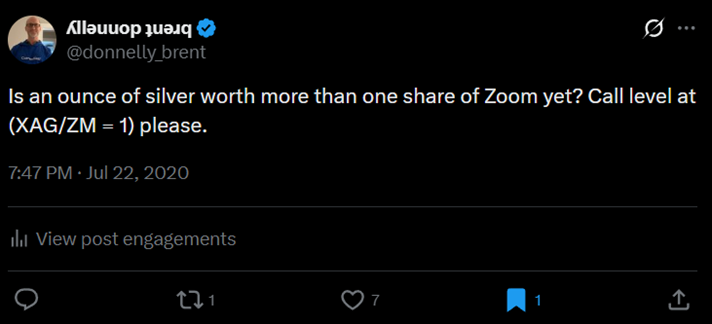 I am happy to inform you that silver was $21 then and ZM was $270. They finally crossed! Silver 99 ZM 85.