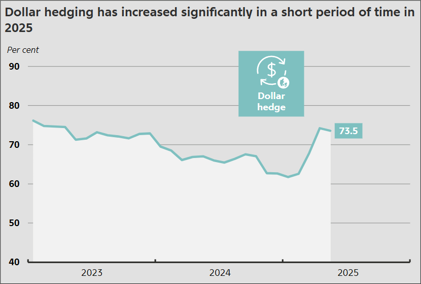 The vibe from the EU pension fund dinner last night is that they ramped up hedging either in January (lucky!) or April (less lucky!) and have now stopped adding to hedges. This chart of Danish pension fund hedging is representative.