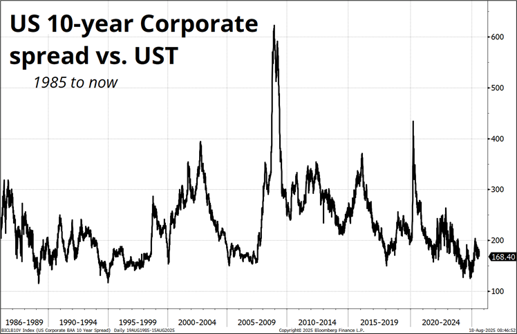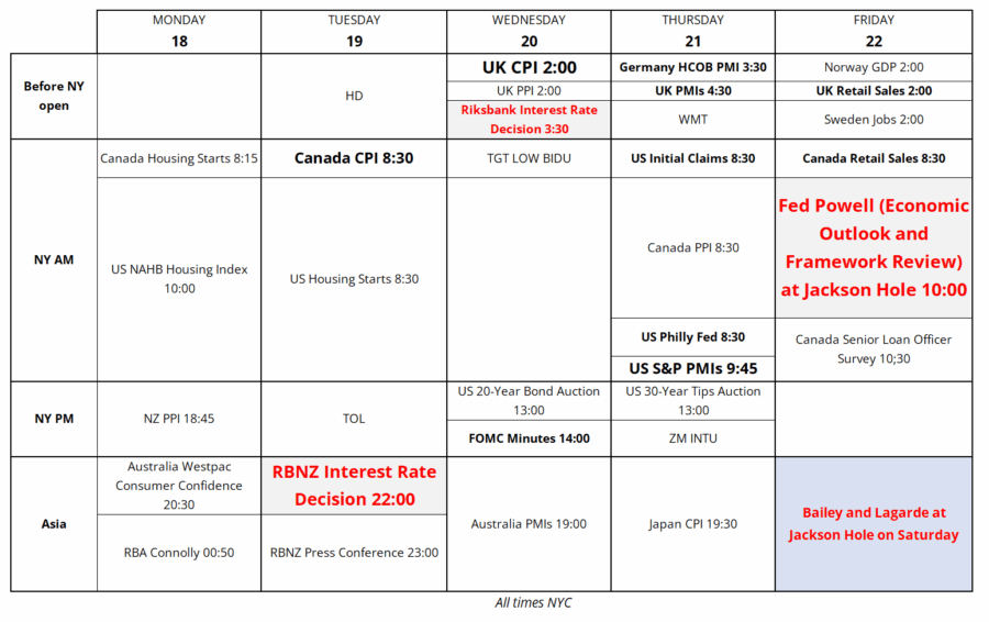 Anyway, I am not as convinced that US interest rates are restrictive, but political pressure has moved two Trump-appointed Fed voters to the dovish side, and we will see if and when Powell and the others cave in. With 2.18 cuts priced by the conclusion of the December meeting, I don’t really see much room for a dovish surprise from Jackson Hole at this point. More likely Powell continues to say we are data dependent and then the proof is in the economic pudding that will be released in mid-September.
