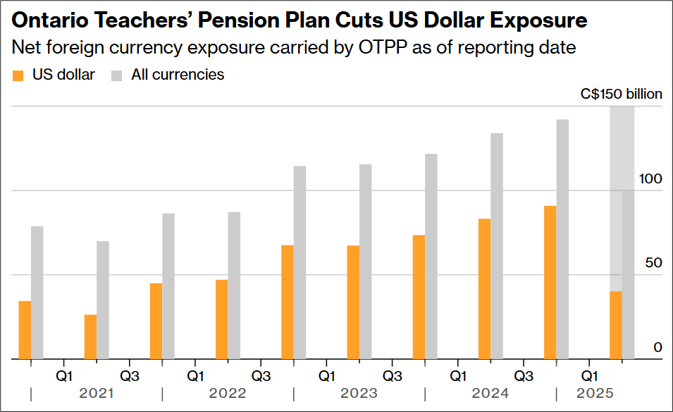 Data from Ontario Teachers’ Pension Plan released last week (see graphic) could be emblematic of how hard and fast foreigners cut their USD exposure. So now we wait for more clarity on where the US economy is headed. The Fed and the US government can say whatever they want, but US interest rates are more likely to be driven by economic data, not moral suasion or rhetoric.