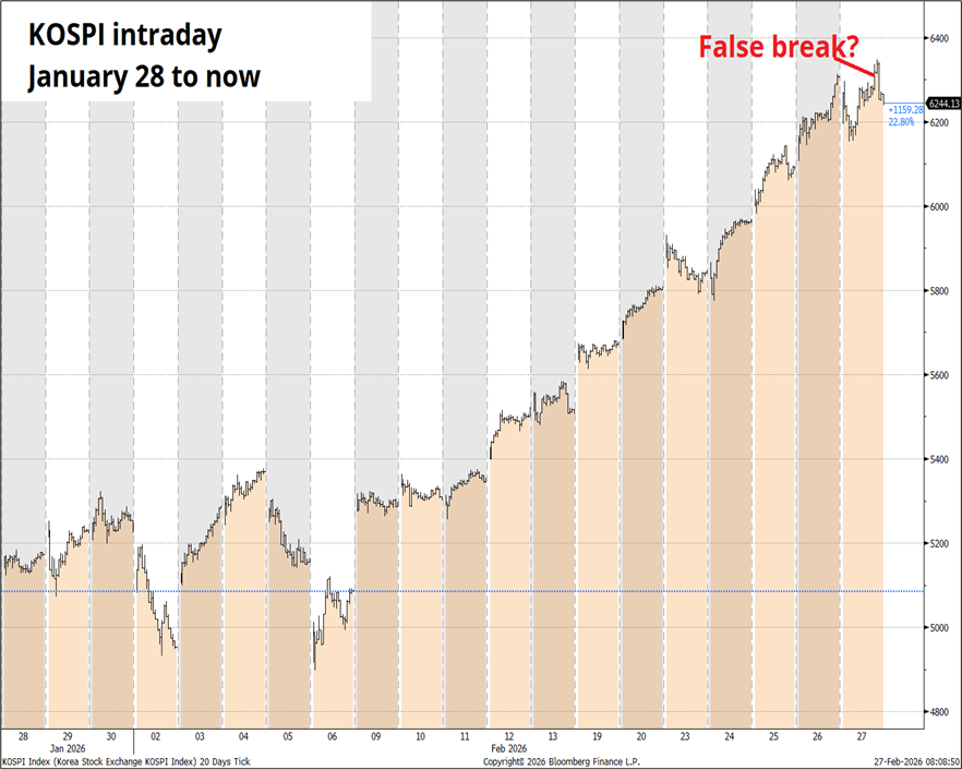 Weekend jitters, flattening the USDCNH slope, and KOSPI madness