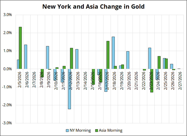 Looking at the month of February, you can see the first day China came back from holiday (23FEB on this chart which is Asia morning 24FEB) China sold gold. Since then, U.S. and Asia have been small buyers but the interest has not been particularly persistent. My theory was that tax refund money drops would drive retail into GLD but that hasn’t really been the case.
