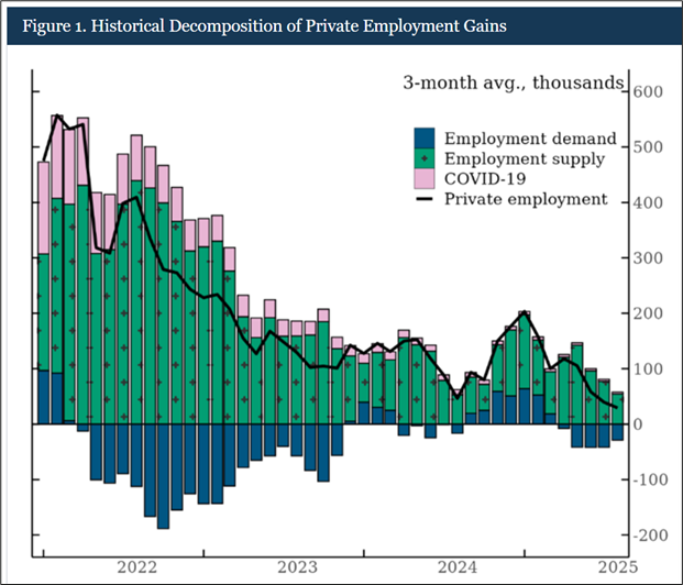 Payrolls is more about supply of labor than demand these days, so it’s quite confusing. For example, check out this chart, from a January 30 Fed piece on supply and demand for labor.