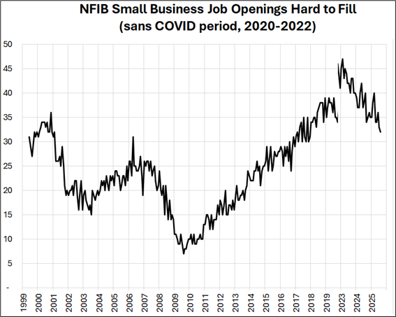 And finally, how hard it is to fill small business job openings.