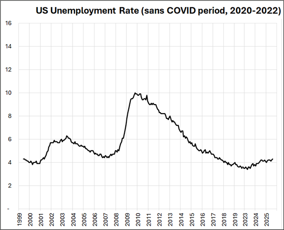 Watch the Unemployment Rate and Initial Claims going forward, and expect NFP to be in the 0 to 50,000 range as the labor market remains in balance while demographics and immigration crackdowns reduce the supply of workers. UR>4.5%, Claims>280k, or NFP sub-zero are indicators that the job market is troubled. The economy’s reliance on data center spending is the biggest economic and financial stability risk right now, so you can also watch for any regime change in that space that might lead to a full-on countercyclical doom loop. Everything is procyclical right now and one day, everything will be countercyclical. But not yet.