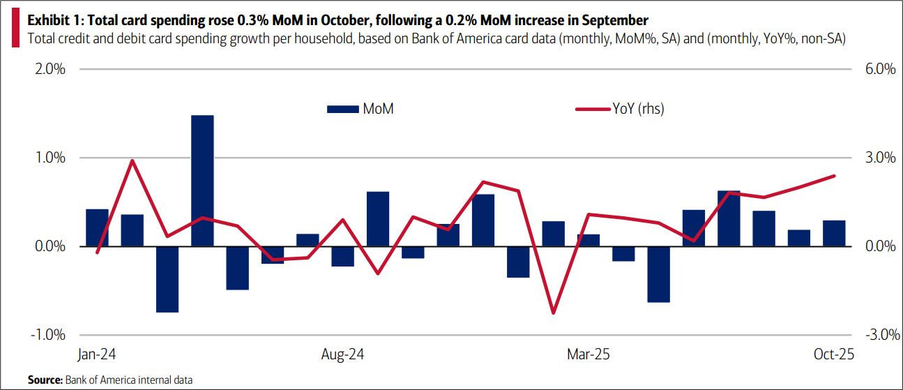 Like I said, probably not useful, but I highlight it just in case. Meanwhile, the BofA Consumer Checkpoint shows the US consumer continues to spend, and the k-shaped economy is alive and well. See link for the full report and breakdown of spending by cohort, etc.