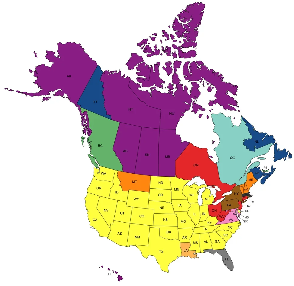 Most common country of birth for foreign-born residents in each state and province of USA and Canada