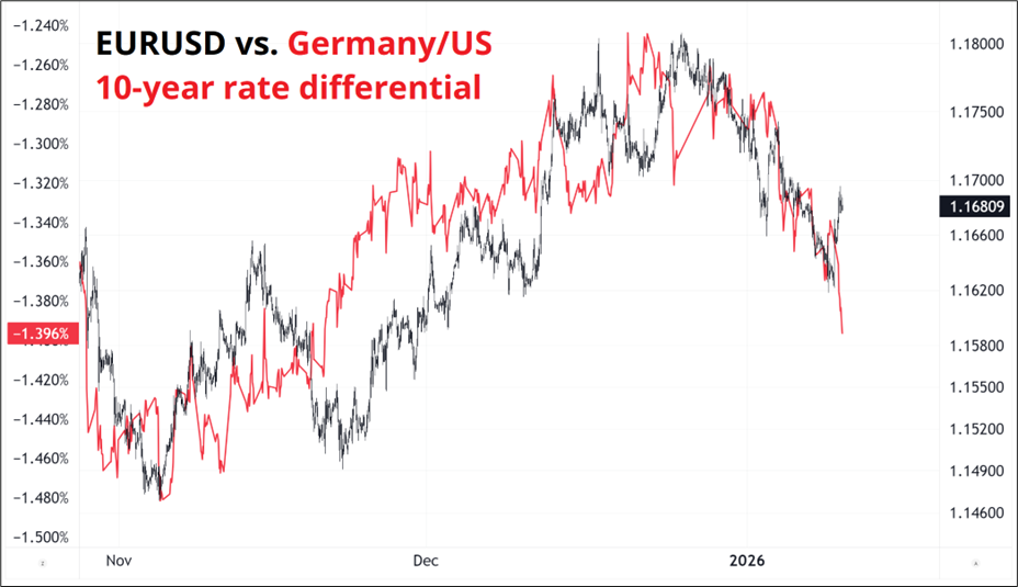 I understand why the market feels compelled to sell USD on the DOJ launching an investigation into Jerome Powell (an investigation approved in November 2025), but I highly doubt the story will have lasting relevance. Jerome Powell and Lisa Cook will remain on Trump’s personal vendetta list until they are removed, or their time at the Fed expires naturally. Either way, I don’t think we are learning anything new, and I don’t think the future path of monetary policy will be affected. Sure, it’s another glitch in the old checks and balances but the Overton Window was smashed a long time ago. This is just more of the same and Powell’s a lame duck anyway.
