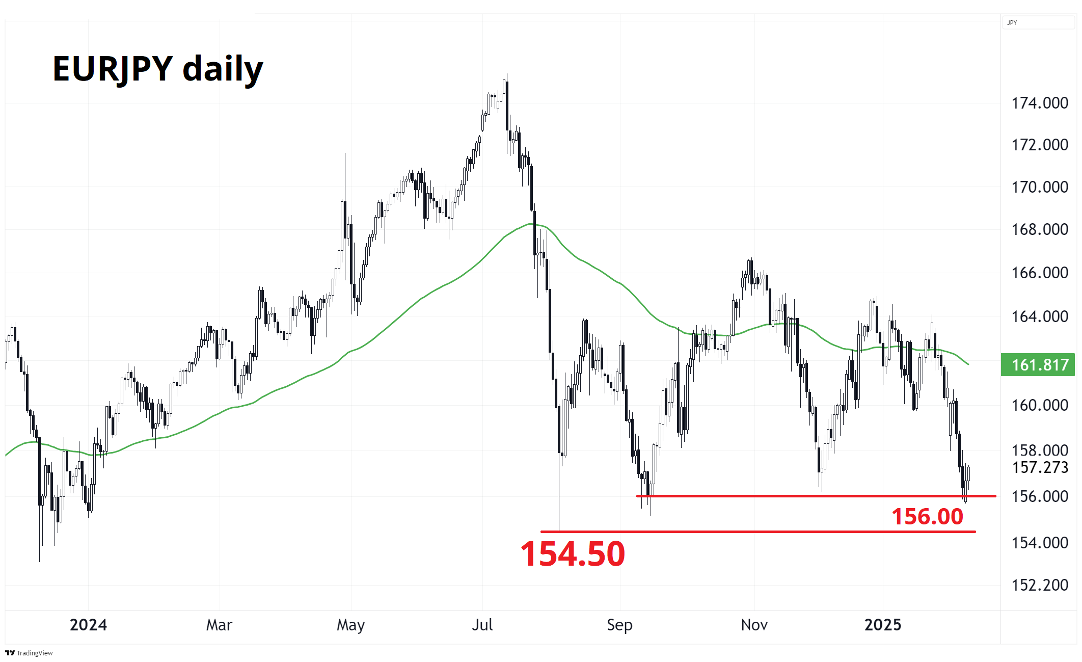 This hold, and the possibility of a strong CPI tomorrow could bode poorly for newly-minted USDJPY and cross/JPY shorts. EURJPY, GBPJPY, and CADJPY lower have all been part of a minor JPY-positive theme of late. EURJPY held major support on the daily (see next chart) while GBPJPY and CADJPY both broke support, then recaptured it in a slingshot reversal formation.