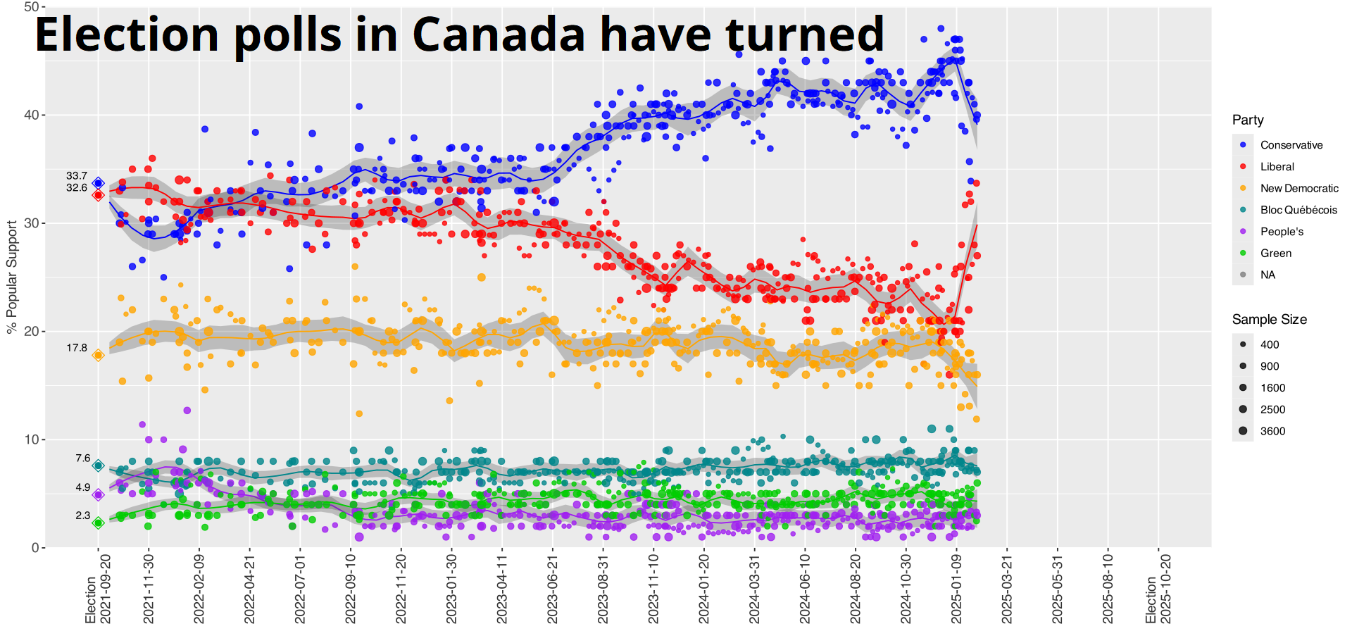 Oddly, Mark Carney, the most elite of the elite, is making a strong showing in a world where everyone thought that Davos Man was dead. We shall see.