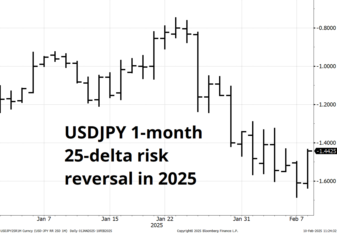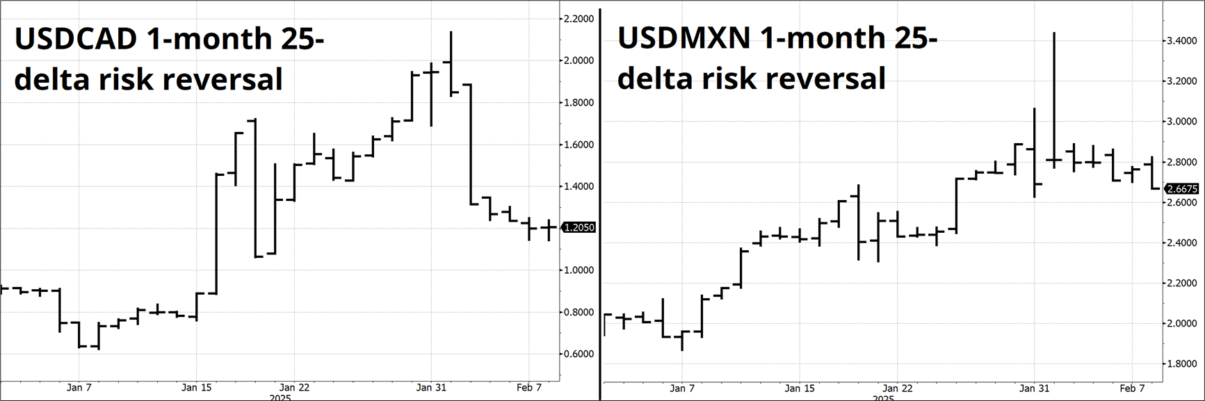 In contrast, while the CAD and MXN riskies have also repriced, they still remain solidly bid for USD calls and higher than where they started 2025.