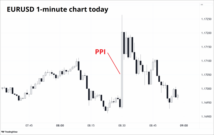 Not much sturm and very little drang after today’s PPI as the Core figure came in as expected and there is no meaningful read through to CPI or Core PCE. We are left to watch and wonder ahead of tomorrow’s CPI release. The market reaction was mildly interesting as there was an excuse here to sell USD on some of the weaker headline figures and revisions if you’re into that sort of thing and yet EURUSD did this: