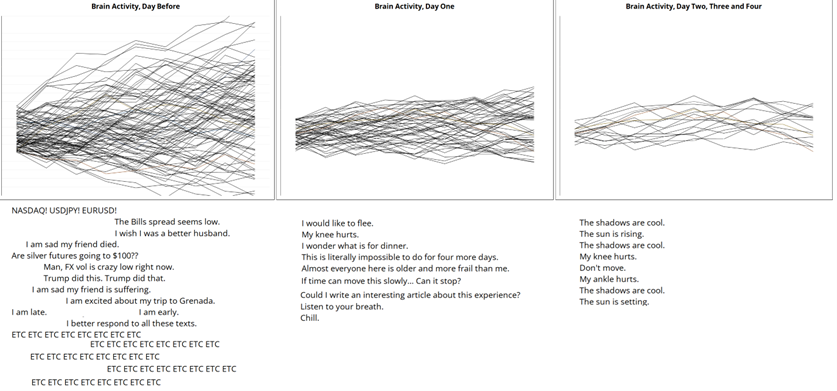 As a recreational meditator, the biggest surprise from this considerably more hardcore experience was the incredibly high level of mental and physical difficulty. I underestimated the physical pain of sitting still for so long, and I underestimated the mental challenge that comes with the incomprehensible stretching of time. With no action, no decisions to make, constant pain of varying intensity, limited sensory changes, and zero conversation, time expanded in a way that is hard to communicate without sounding hyperbolic.