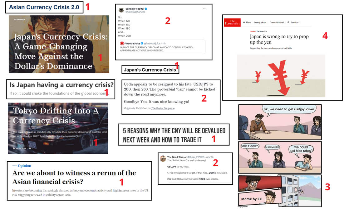 Normally you see memes and END OF THE WORLD! headlines and CRISIS IN –INSERT COUNTRY– covers on The Economist after markets crater. Those can be good reverse indicators. This collage from April 2024 is a good example: