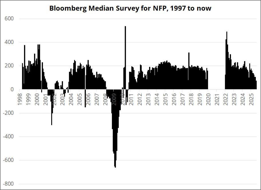 1. This is the lowest median economist expectation for NFP since 2011! Thanks to Mehul for this observation.
