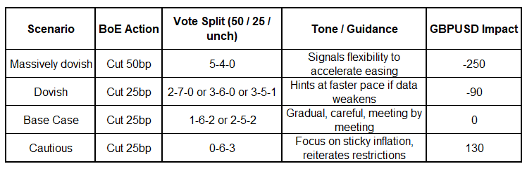 The vote split will be the key to determining which way the BoE committee is leaning. Here is the distribution of 26 economist forecasts.