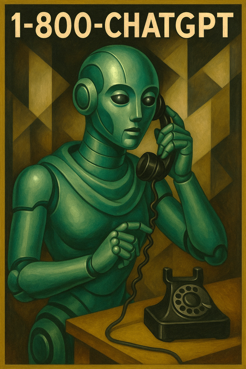 The AI imagines itself calling itself (in the style of Tamara de Lempicka)