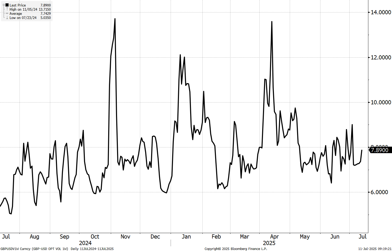 It’s conceivable that GBPUSD could be sub-1.34 next week as there is so much new information to come. 1-week GBPUSD is not particularly expensive as you can see here:
