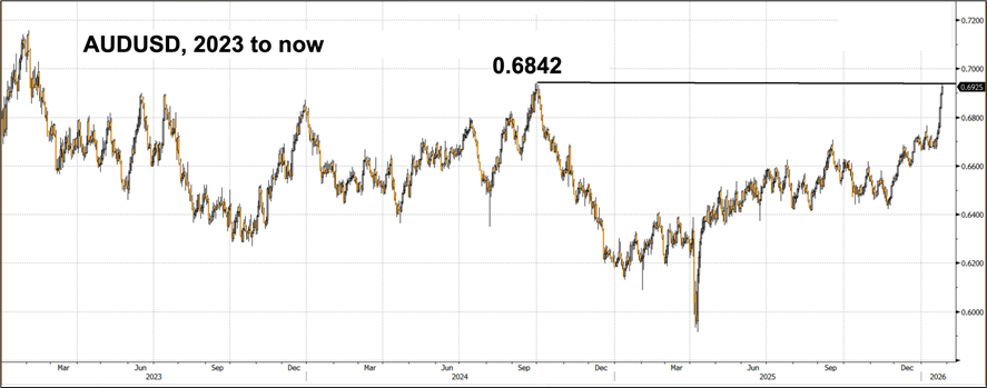 This all sets up for an interesting cat and mouse game as the 08FEB election looms. Takaichi is supposed to be a lock for the win and has the potential to secure an outright majority. But there have been a few wobbles of late around China/Japan and you never know what voters are going to do in this crazy era. If she secures an outright majority, it’s going to be a confusing trade as the market will want to sell JPY, but the government forces might suggest otherwise.