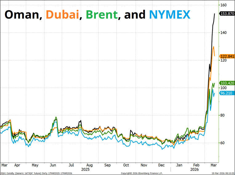 - We have an insane number of central bank meetings this week, but it’s not clear what they mean. Sure, we will see each central bank’s posture on whether they believe the war in Iran is more inflation or growth shock. We will get a glimpse as to how they might respond if it continues. But they don’t know any more than we do about how long this oil shock is going to last. So we know (for example) the RBA is willing to hike here and we are going to find out whether the ECB is still using the old headline inflation playbook… Or whether they might look through the oil shock for now. But then oil could go up or down $40 in the weeks to come and everything we learn this week will be mostly irrelevant. In other words, the central banks are beholden to the same unstable equilibrium as we are.