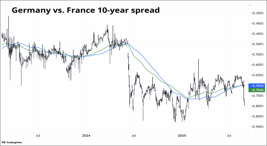 Meanwhile, widening OAT spreads are also bolstering the USD a bit. I had said yesterday that forward returns in EURUSD are not negative after a prior widening, but in real-time EURUSD does track the spread. It’s just that the spread tends to be mean reverting as French politics is too boring to create any meaningful macro story. Watch 90 bps as the line in the sand, because if we go through there, things might get zippy.