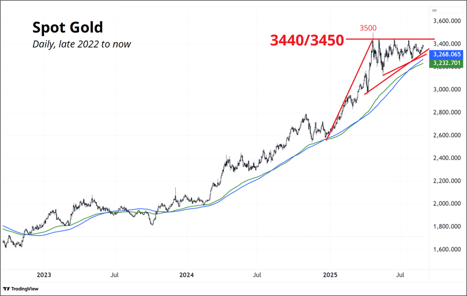 2. Mega triangle forming in gold here. It’s coiling, Corbi!
