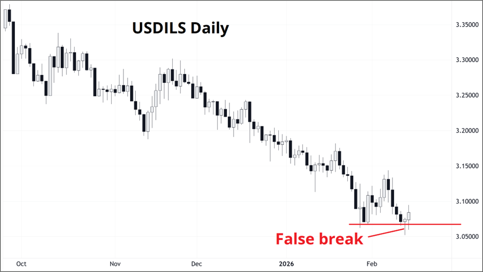 USDILS (HT Phil) made a false break of the lows and has now recovered.