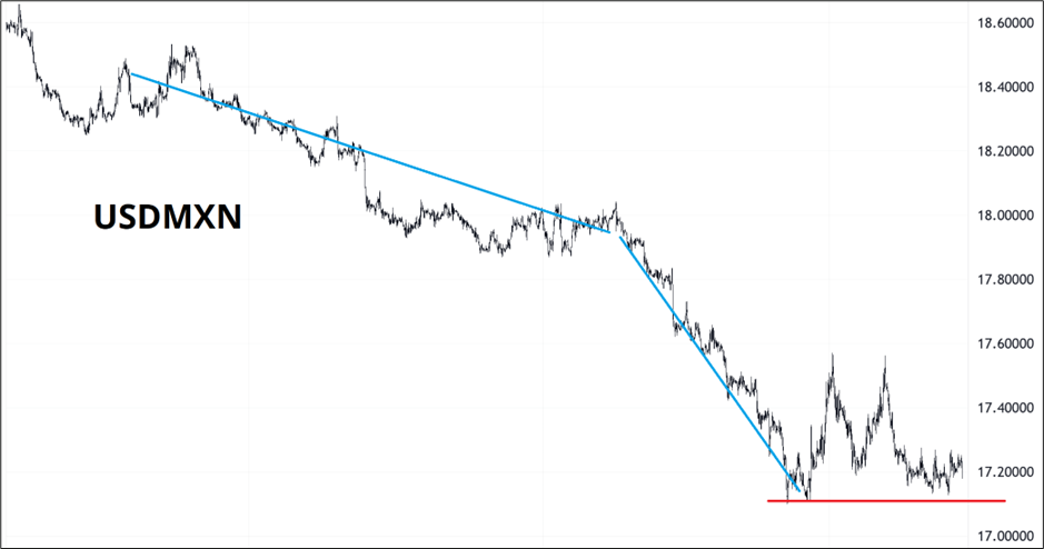 We are at the point in the cycle where it feels stupid to even say “long USD vs. emerging markets” out loud as USDMXN (for example) has delivered a Sharpe of 2.5 over the past year, including carry. The charts of USDMXN and USDILS, however, both look supportive. Note how USDMXN depreciated at one slope for most of late 2025 then found a steeper way down into the end of January. Since then, it’s flatlined and it cannot take out 17.00.