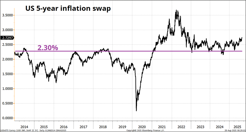 The big flow in USDJPY yesterday hit a brick wall into 148.00/148.20 and so that becomes an interesting level to watch now. US Inflation swaps are creeping higher and Japanese nominal rates are making new all-time highs and USDJPY is bouncing around in a range. You can see in the first chart today that yields and USDJPY have been diverging since Liberation Day as the market priced lower USD and higher yields in April and has spent the past four months going the other way.