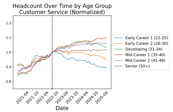 Young people employed in service and software jobs are most easily replaced by AI, according to this (interesting, if not surprising) paper