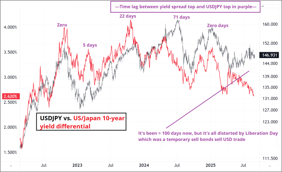 I would say all signs point to lower USDJPY, other than the performance of US equities and the US economy… And the fact it hasn’t broken yet! From a tactical point of view, there isn’t really any reason to be selling it here, right on support, but if you are a bigger picture macro person who believes in some combination of fiscal dominance and a US labor market slowdown, it could be very expensive to wait for a clear breakdown.