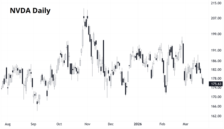 So for now, the NASDAQ is in familiar territory as behemoths like NVDA pretty much have not moved in 10 months.
