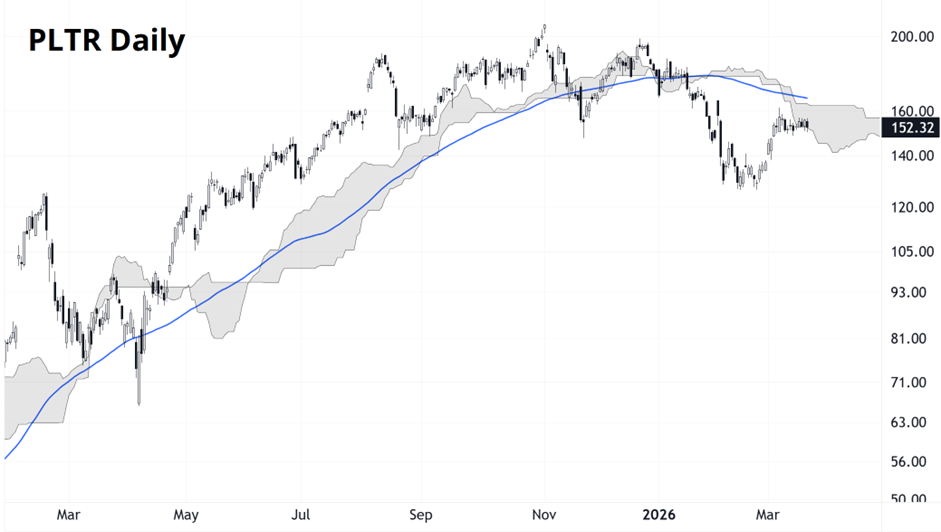 Here’s PLTR with the 100-day and the cloud.