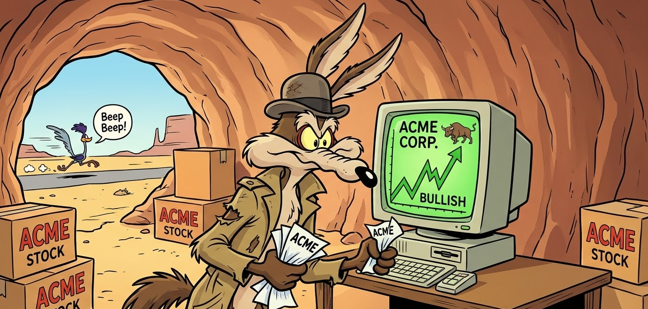I am bearish today and into next week. I feel that equities are doing their best Wile E. Coyote impression right now, but I think they will go lower in the next two weeks because: