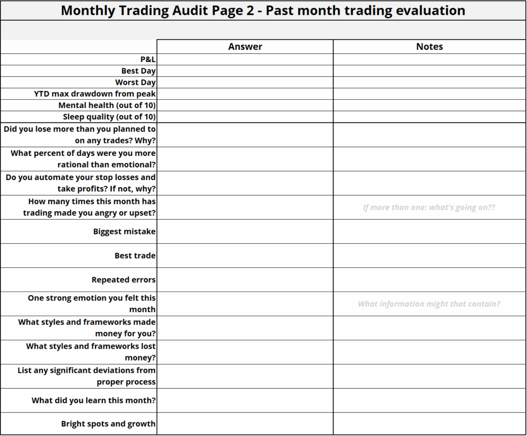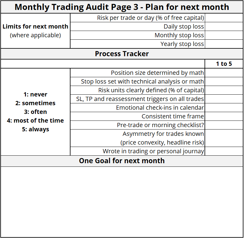 This spreadsheet is a monthly self-auditing system the way Brent has shown in Alpha Trader 2.